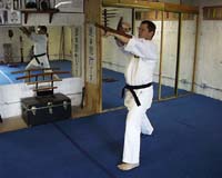The main weapons taught in Seidokan Karate are the Bo (known as 'Kun' in the Okinawan dialect), the Kama, Sai, and the Tonfa (or Tuifa in Uchinanguchi, the dialect of the Okinawans). (See the Weapons Page for the kata list.) The Nunchaku are also taught, though traditionally there are no kata for this weapon. (However, some systems, such as the Matsubayashi Ryu and Ryukyu Kempo have formulated kata for the nunchaku in an effort to preserve the authentic techniques, as opposed to the flashy slight-of-hand flipping that most backyard and modern sport practitioners are known for.) There are also the Iai (sword drawing) kata taught at the master level.