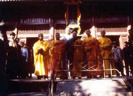 Discipleship ceremony, October 1997, with Shi De Cheng and Buddhist monks in Shaolin Temple
