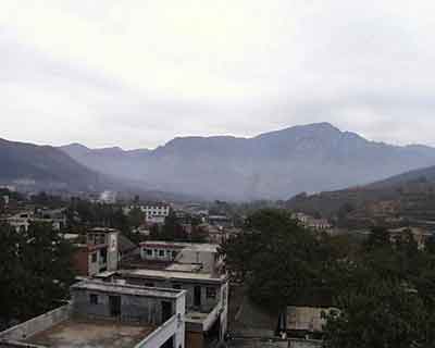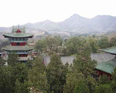 Shaolin village, from Mt. Song. The Shaolin Temple is center, right.