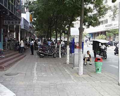 I noticed another type of "store" when I was in DengFeng. Yong and I were walking the streets after having some chicken and noodles in the street. I was drawn to this one door that had a sign above it that depicted a guy and a girl dancing. Thus, I, the ever observant one, deduced that it must be a dance club. Especially when the door opened and a few girls stuck their heads out to look at me. I asked Yong about it. He told me that it was a dance club. (God, I'm good). You go in there, you pick a girl, and you get a certain period of time to talk to her and dance. Kind of like getting into a cab. You pay for the time you spend with her. I kind of thought that to be a fascinating idea, so I pressed it with Yong. I said "You mean it's a whore house". He wasn't quite sure what I meant by that, so I didn't push it. The whole concept of sex in China is one that is not broached lightly.