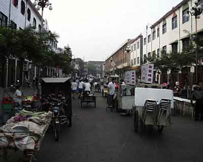 Despite the fact that many people are upgrading to motorcycles and motor scooters, many workers still rely upon the old standby. Human power. Hand drawn carts are common, even in the largest cities. Beijing included.