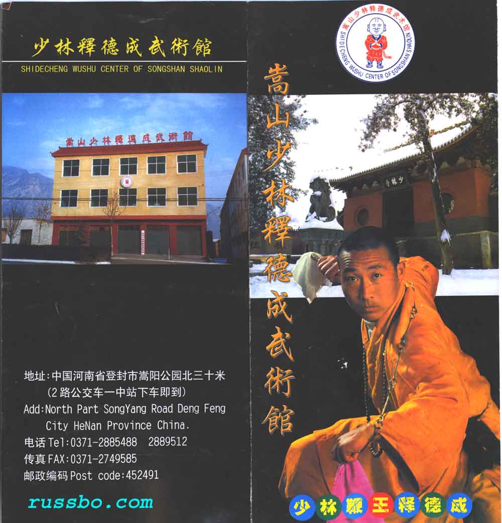 Shi De Cheng opened his first school in Dengfeng, Henan province, nearby the Shaolin Temple, in February of 2001. His school in China has approximately 50 full time students; he has over one thousand students in France, and over one thousand students in Italy. Out of the over two thousand students in Europe, only twenty are disciples.