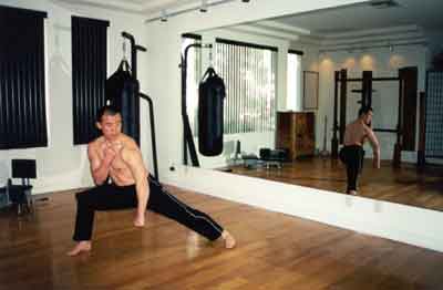 0900-1100: They again trained in gong fu at this time. Basic maneuvers and forms were all done. Remember, this was at a time before competitions were popular, so most of the gong fu training, if not all, was in traditional forms, and not in competition forms. Regardless, his training consisted of a lot of acrobatic jumps and kicks and the like, as they train now, all of the stuff that ignorant westerners look at and think is just pretty ineffective ballet style fighting.