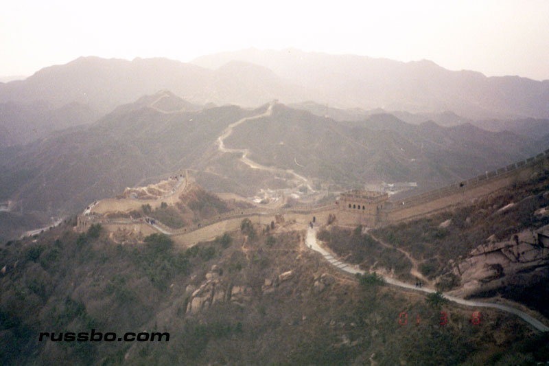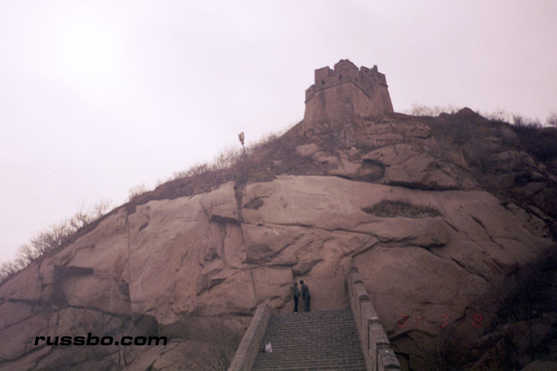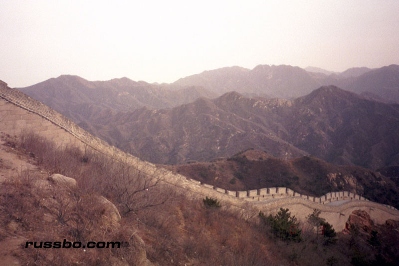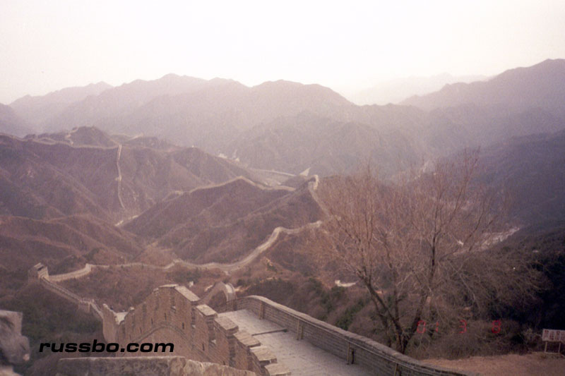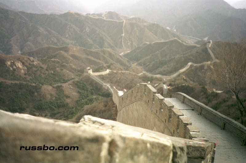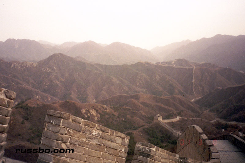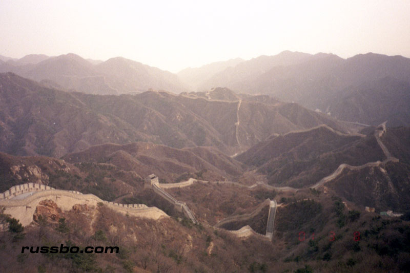 The Great Wall at Ba Da Ling is nearest to Beijing, and is therefore one of the most frequented spots visited by tourists. It is also one of the most spectacular, not because of the nearby surrounding countryside, or, the remoteness of it, but because from the higher sections of Ba Da Ling, one can view many various sections of the Wall as it travels up mountainsides and down into valleys. There are many sections of the wall that one can see from the higher vantage points. Viewing Ba Da Ling from the lower sections, which is most frequented by tourists, does not yield the stunning vistas that one sees from higher up. The view from the higher sections can be attained by walking up the Wall pathways, but, the more time and energy efficient method is to take the cable car, which, considering the high winds in the area, is an adventure in and of itself.