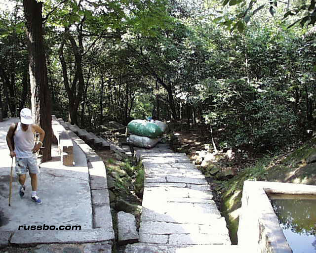 "Tomorrow, from the hotel, you walk up this trail (one of many on the map), and go to the top of the mountain, where you will stay at the Bai Hei guesthouse". Fine, I thought, no problem. "Are the signs on the trails in English?", I asked. "No, all in Chinese. Look at map". I thought this was going to be quite the experience, as on the small map, I could barely make out anything that resembled visible Chinese characters. I figured that I would just make the best of it, and just keep walking until I found the hotel. What a great way to spend a birthday. And, as I had experienced a few years ago, climbing another of China's famous or holy mountains, I told him that "and the driver will drive up with my bags." I thought, this should be fun. I walk, and my bags meet me there.