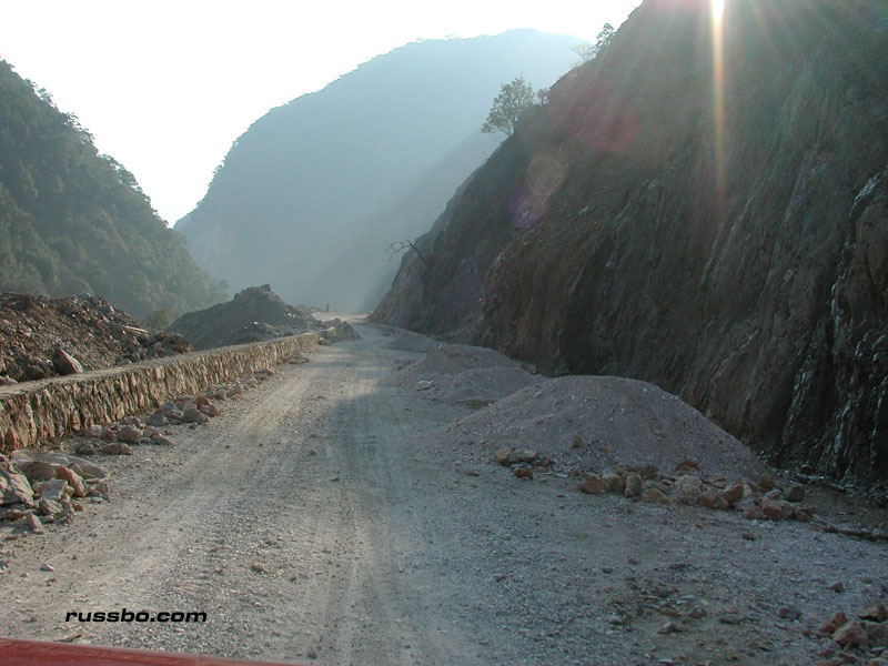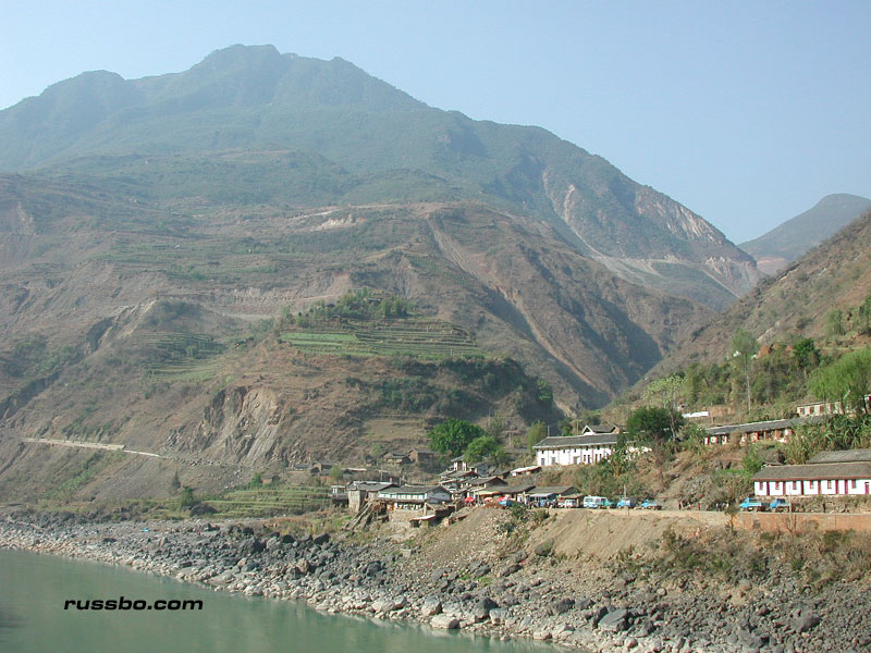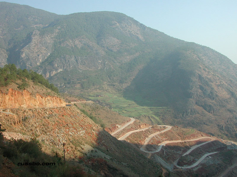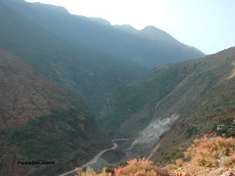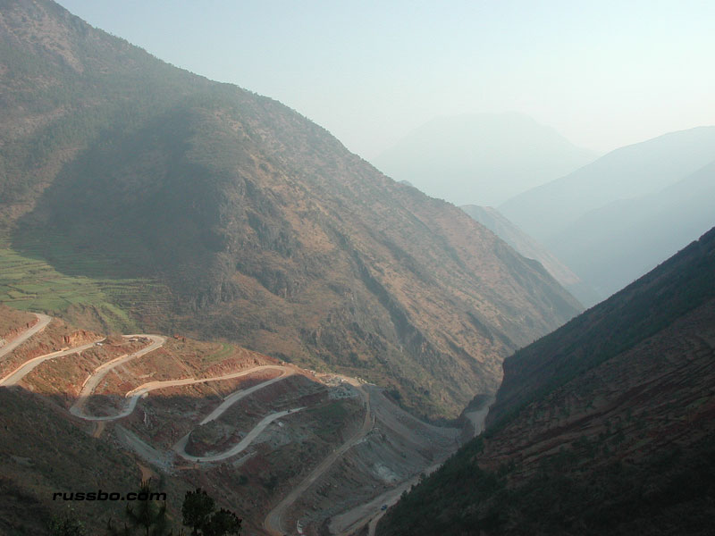 The pictures in the photo gallery show our nine plus hour journey from the habitable areas of Yunnan to Lu Gu Hu. It was quite the trip. It's really hard to explain. One minute you're completely enthralled with the incredible scenery; the next, concerned that your driver, who has absolutely no understanding of friction, vectors, forces, momentum, speed, tires, transmissions, and, the consequences the impact of a small, shitty, Chinese built automobile has upon its occupants after it plunges five hundred feet into a ravine filled with raging water, hasn't the slightest god damn idea as to what he's doing. That's after it hits a few boulders and large, shitty Chinese built trucks. After the third time the bald tires slide precariously close to the edge of the unfinished road, as you look down the mountainside a few hundred feet, searching frantically for a soft spot a quarter mile away to land in, you start to realize that those threats of pain, death and dismemberment went completely unnoticed by your completely ignorant driver, who, typically responds to each "Please slow down" with "Do you drive a car in America?" No, like I haven't the slightest idea how to drive a car. My response typically is "What the f-ck is a car? We don't have those in America." Which, always brings the typical all-knowing response, and that typical 'you dumb stupid American' smile. The road to Lu Gu Hu is just a sight to be seen. And a trip to experience.